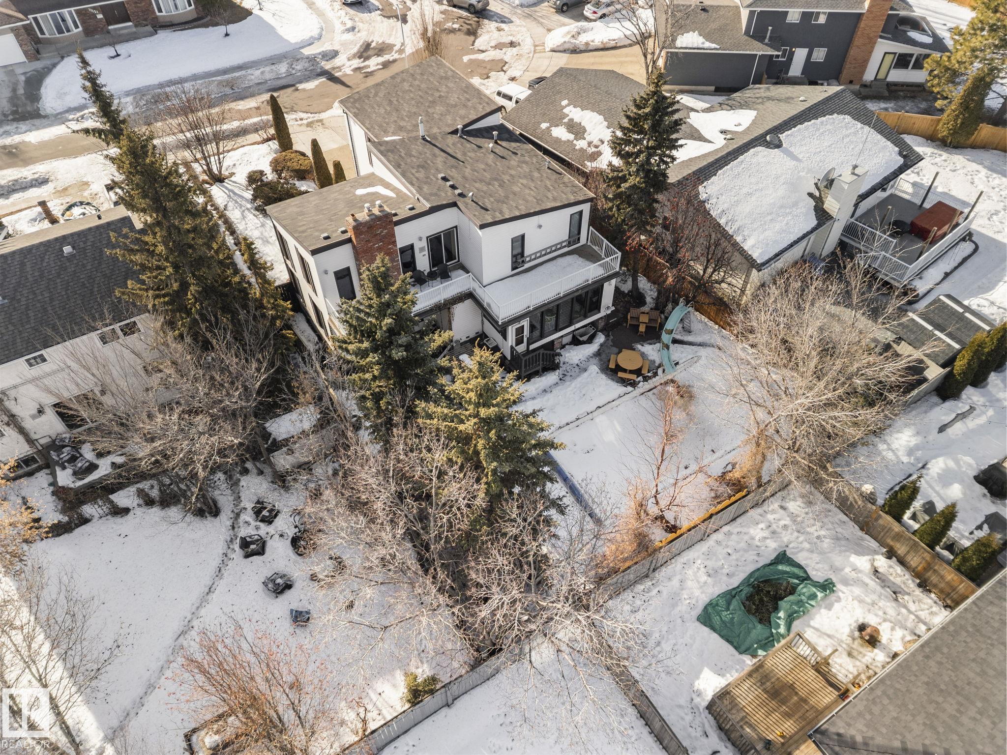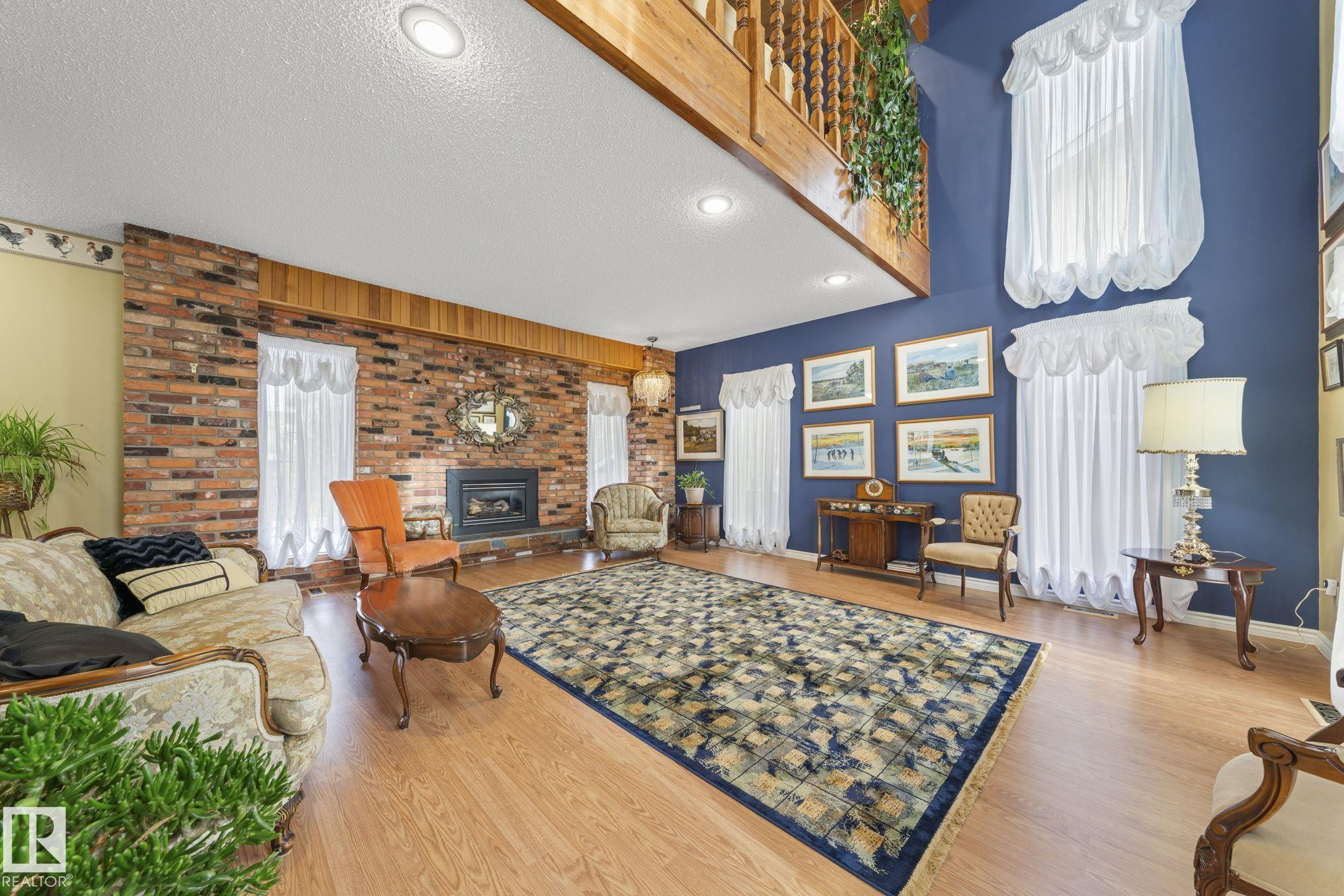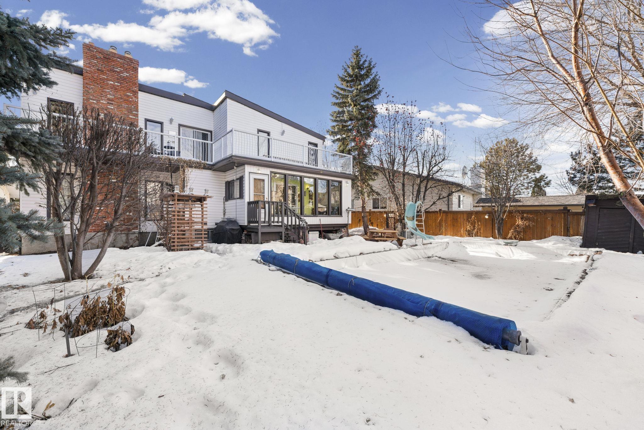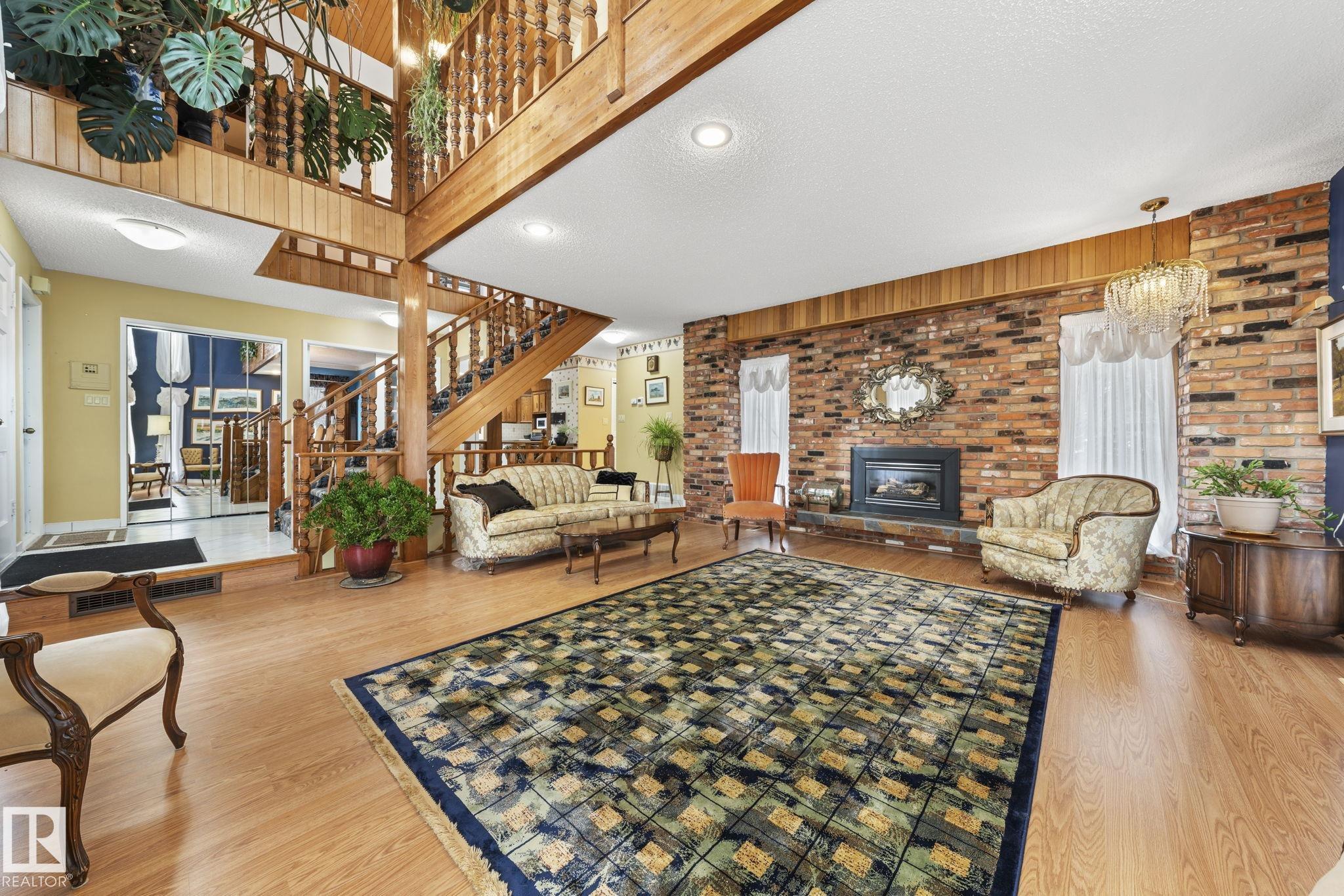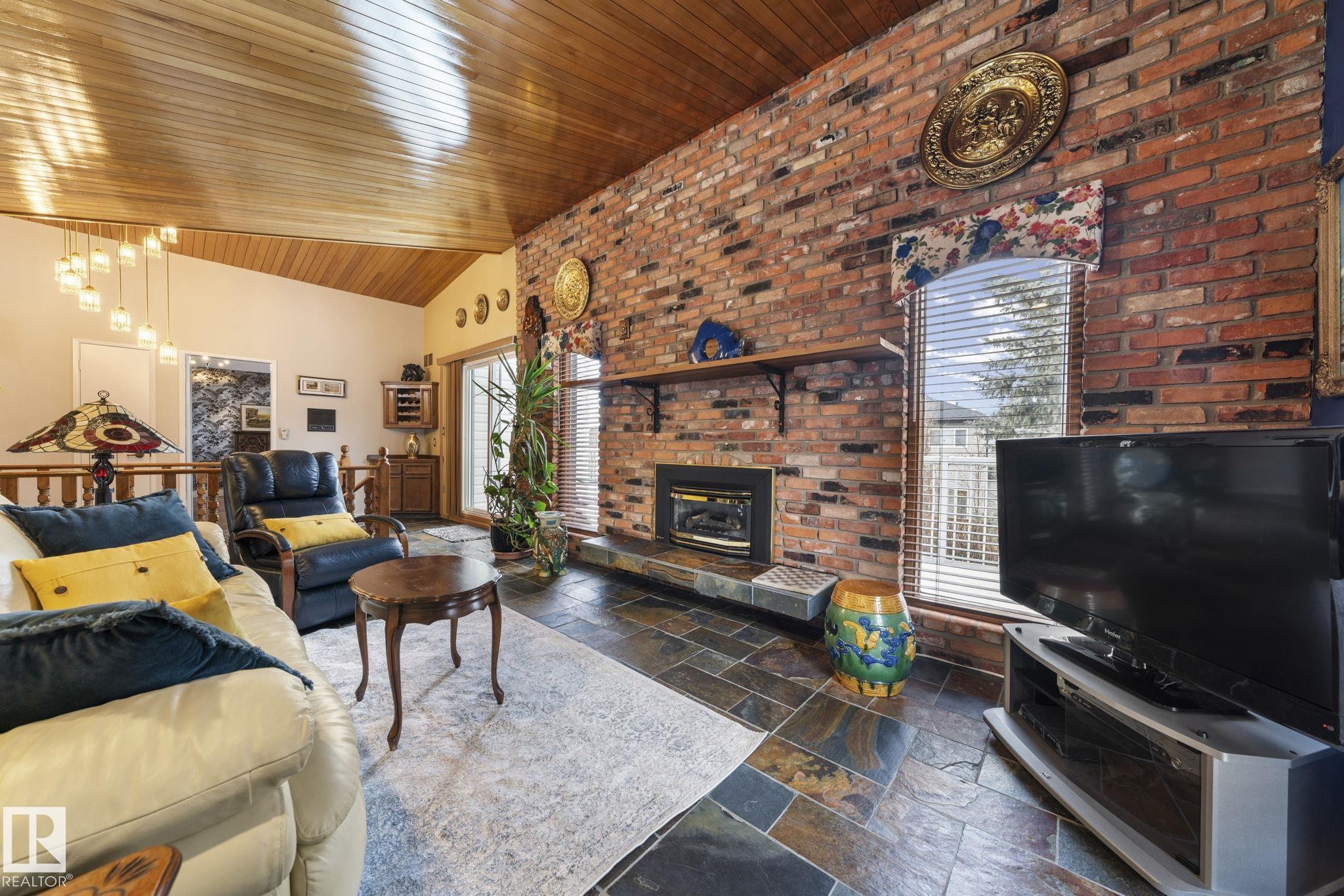 This is a special one! Prepare to be delighted by this absolute GEM in the mature neighborhood of Baturyn. Featuring 4 bd/ 4ba, over 3200 sqft of living space, soaring vaulted wood ceilings and an abundance of windows, this home was made for enjoyment! The main floor features a massive living room with brick fireplace, formal dining room, a 3pc bathroom and a large kitchen opening to an enclosed deck overlooking the pool—perfect for summer parties! Upstairs hosts a gorgeous family room with fireplace and ac...