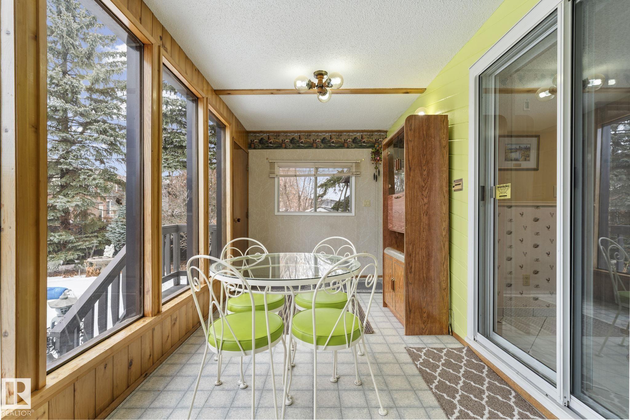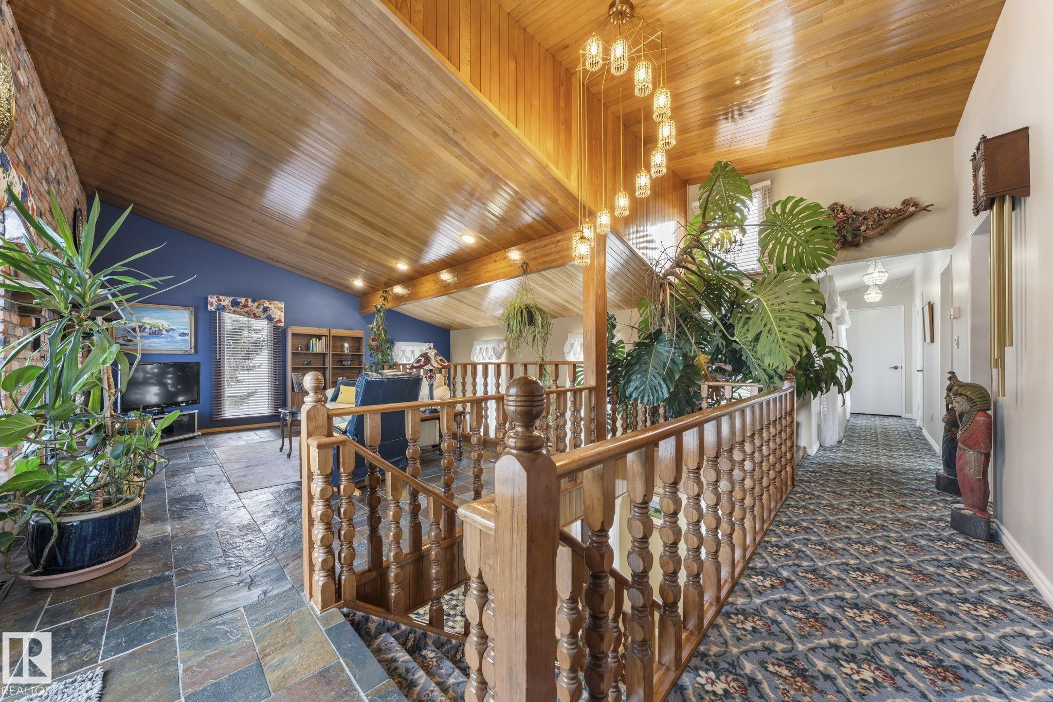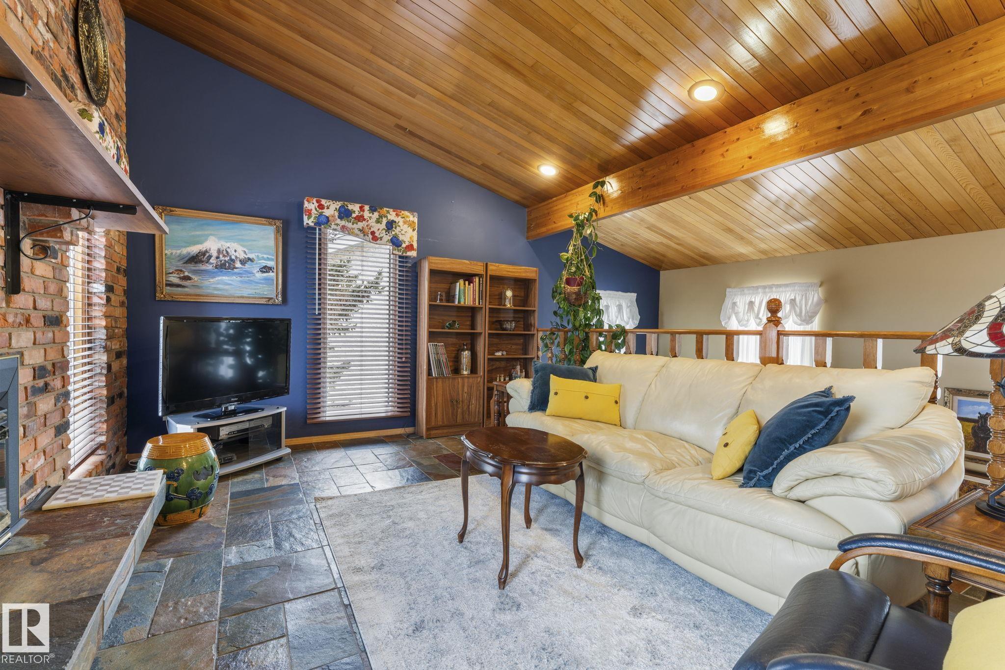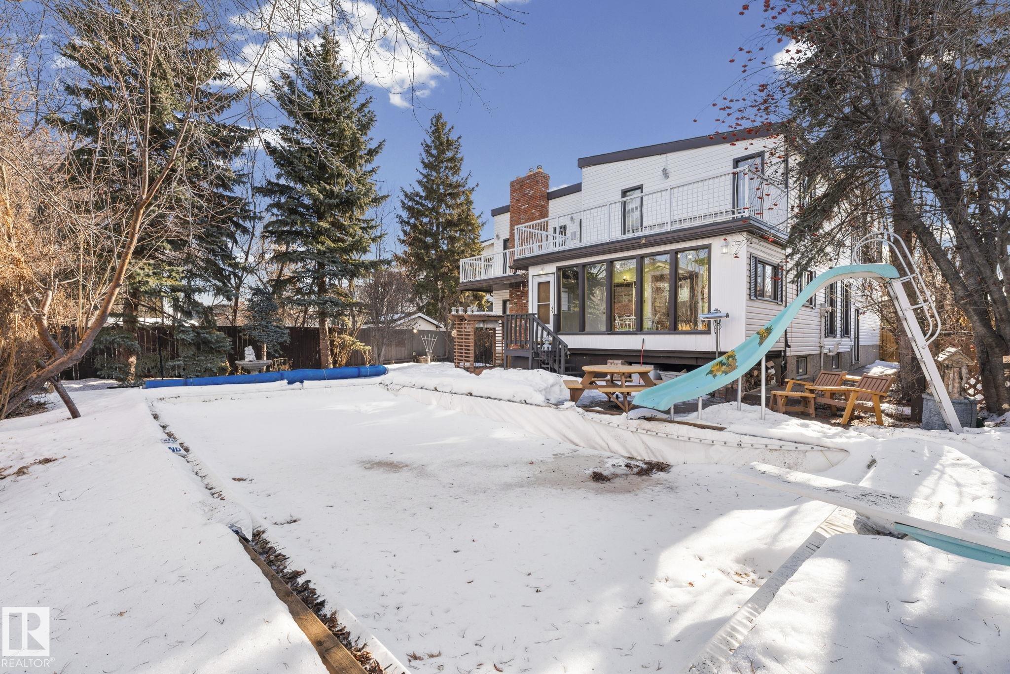 This is a special one! Prepare to be delighted by this absolute GEM in the mature neighborhood of Baturyn. Featuring 4 bd/ 4ba, over 3200 sqft of living space, soaring vaulted wood ceilings and an abundance of windows, this home was made for enjoyment! The main floor features a massive living room with brick fireplace, formal dining room, a 3pc bathroom and a large kitchen opening to an enclosed deck overlooking the pool—perfect for summer parties! Upstairs hosts a gorgeous family room with fireplace and ac...