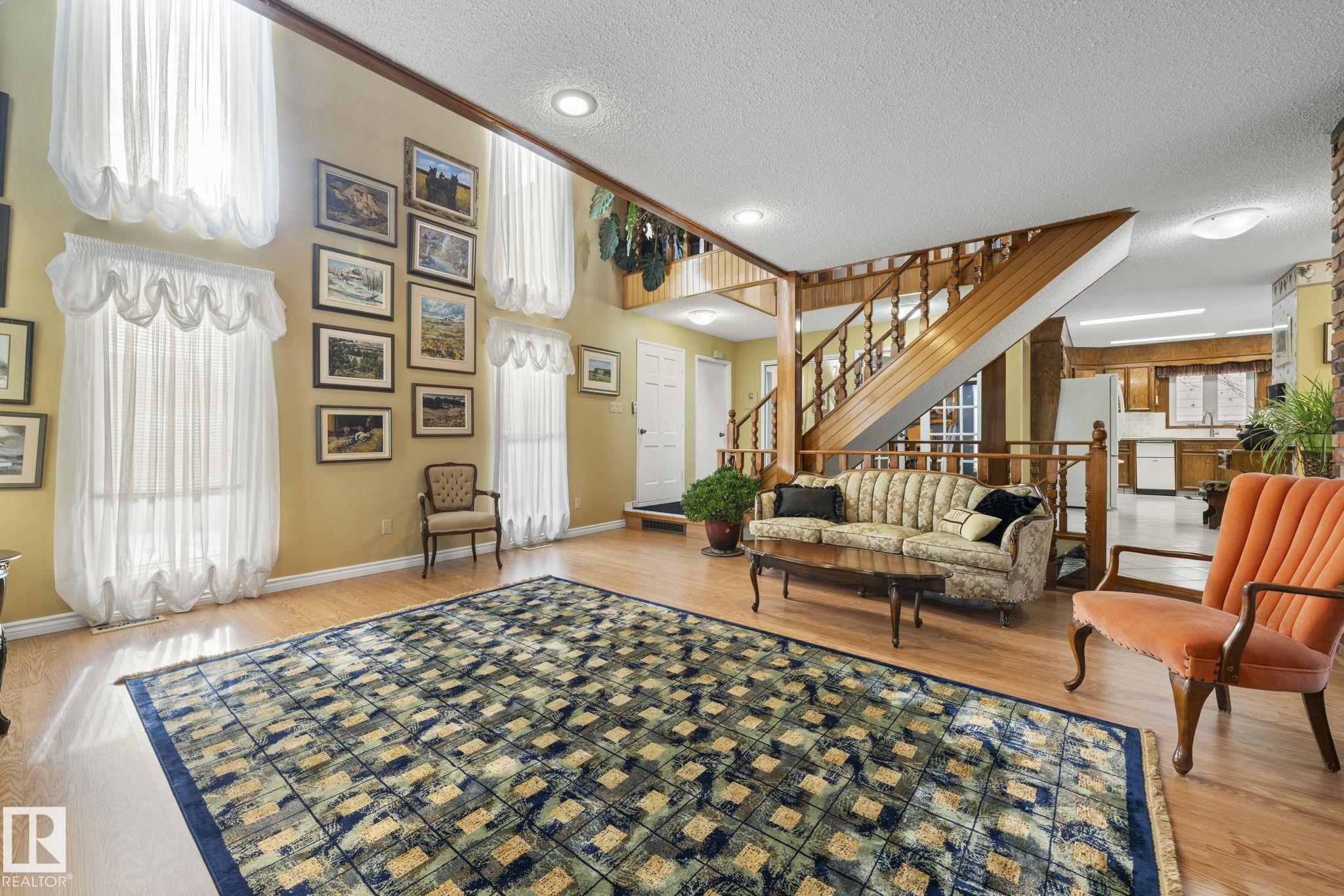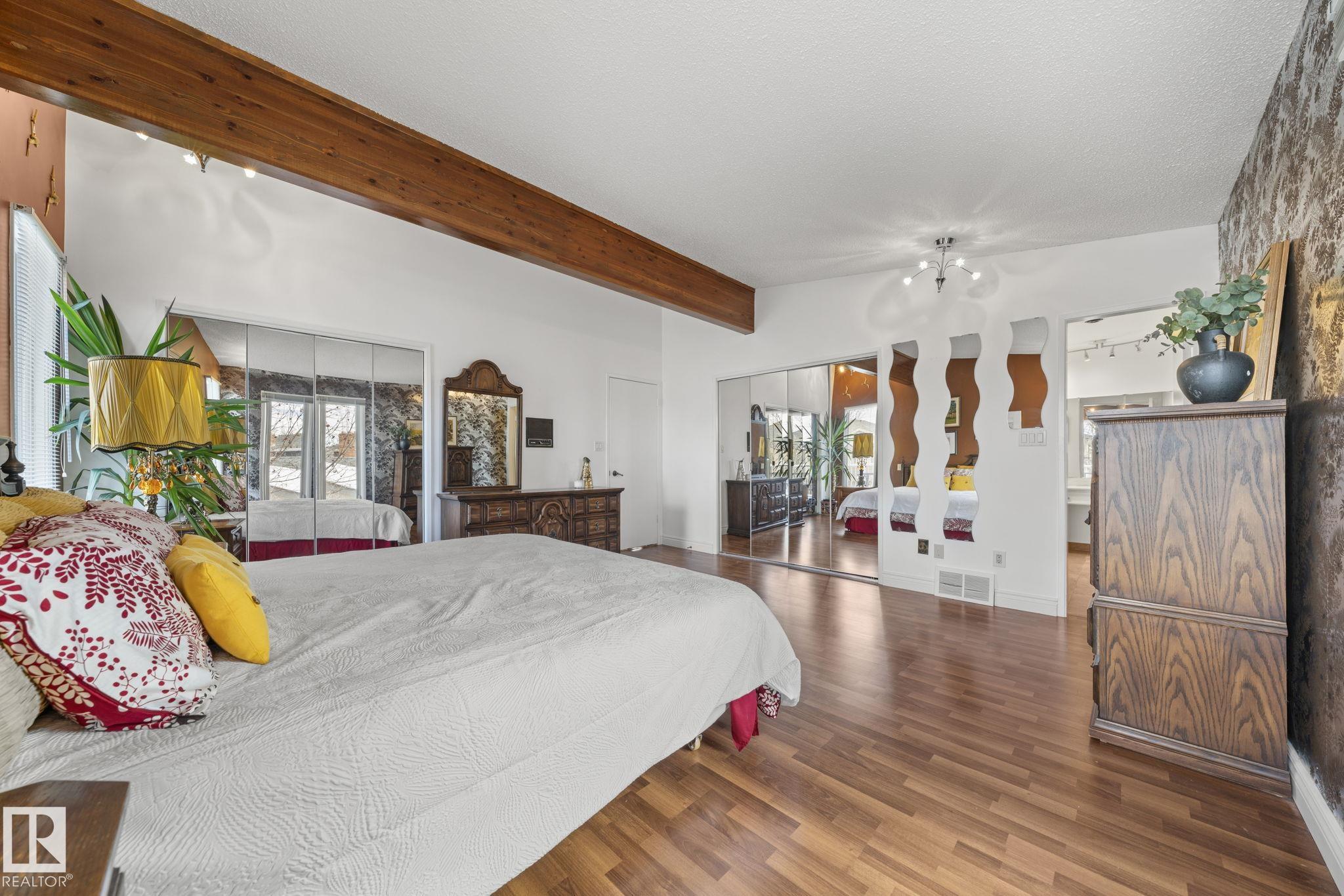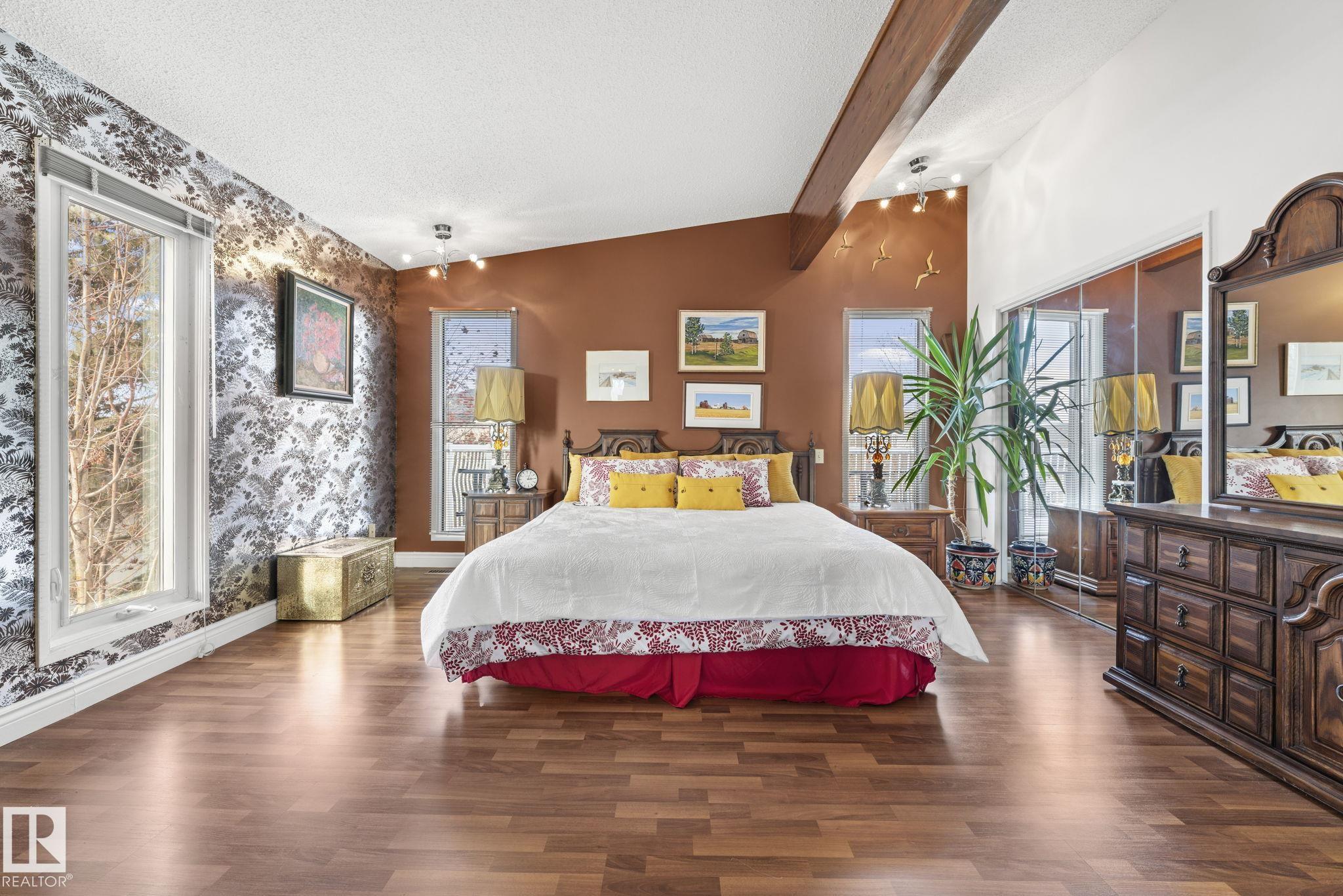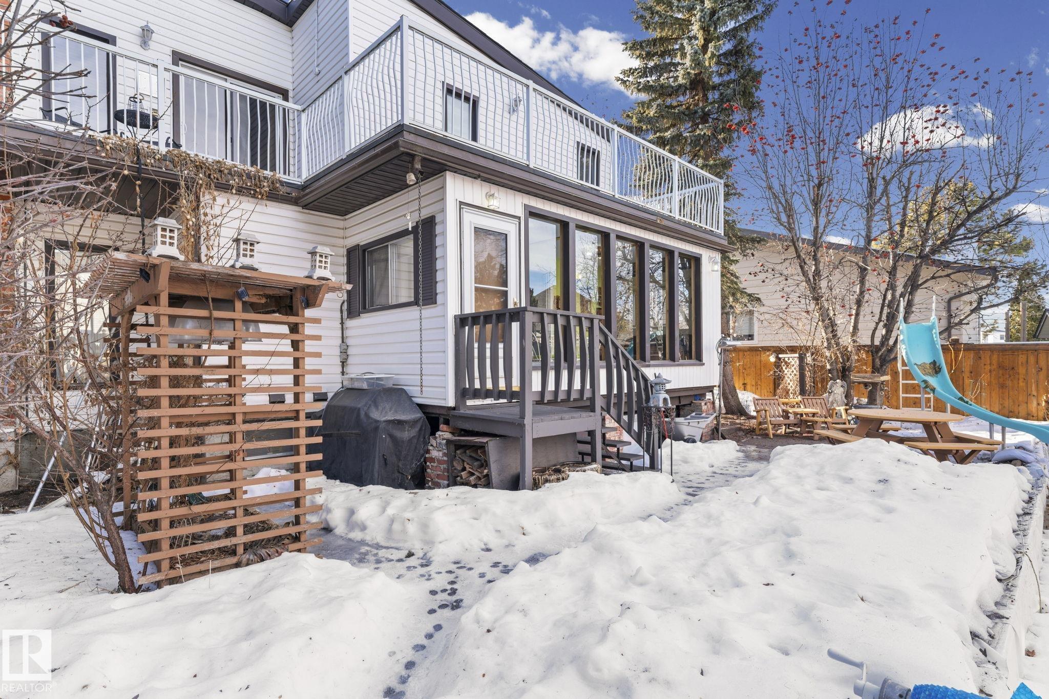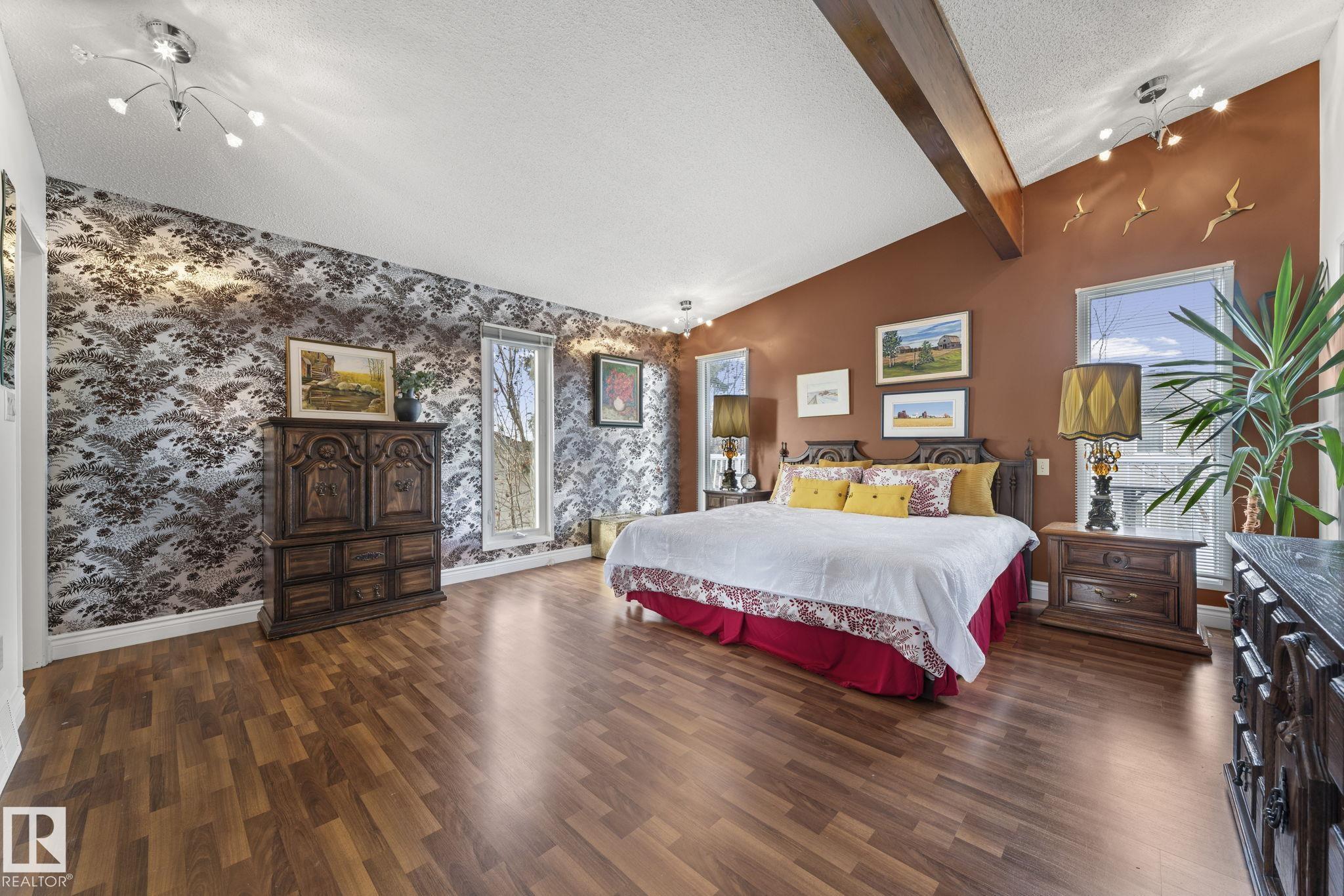 This is a special one! Prepare to be delighted by this absolute GEM in the mature neighborhood of Baturyn. Featuring 4 bd/ 4ba, over 3200 sqft of living space, soaring vaulted wood ceilings and an abundance of windows, this home was made for enjoyment! The main floor features a massive living room with brick fireplace, formal dining room, a 3pc bathroom and a large kitchen opening to an enclosed deck overlooking the pool—perfect for summer parties! Upstairs hosts a gorgeous family room with fireplace and ac...