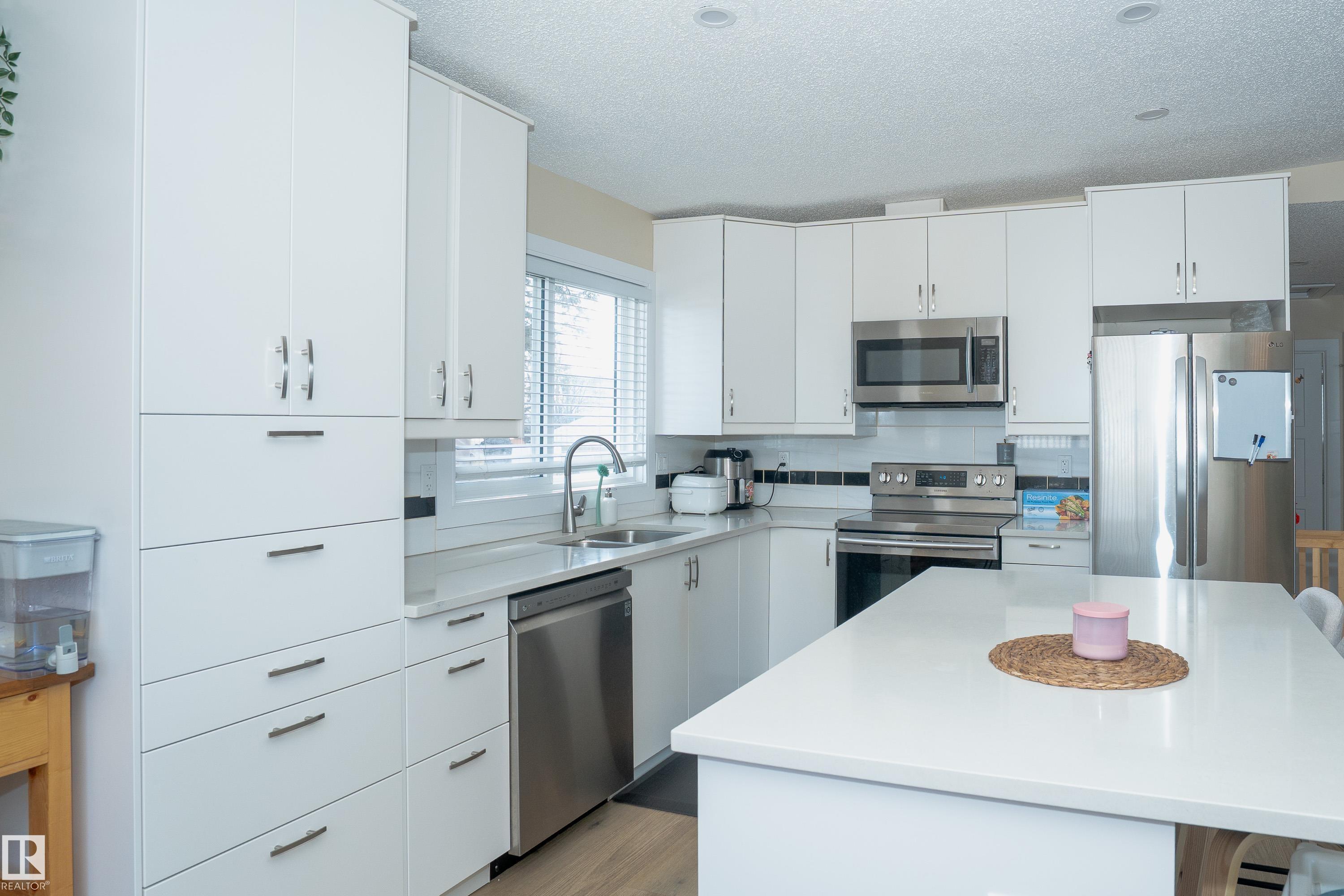 Welcome to this well-maintained bungalow in family-friendly Balwin! The bright open-concept main floor features a modern white kitchen with large island, updated flooring, and a spacious living/dining area perfect for everyday living and entertaining. Main level offers comfortable bedrooms and a full bath. Basement includes a SECOND KITCHEN with SEPARATE ENTRANCE (illegal suite), ideal for extended family or added income potential. Situated on a mature lot with durable vinyl siding, the fully fenced backyar...
